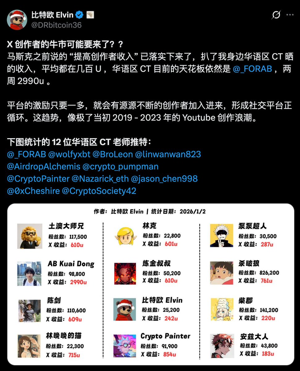 目前我看到的中推的某些朋友,半个月的创作者收益甚至已经达到了 4000 美金。