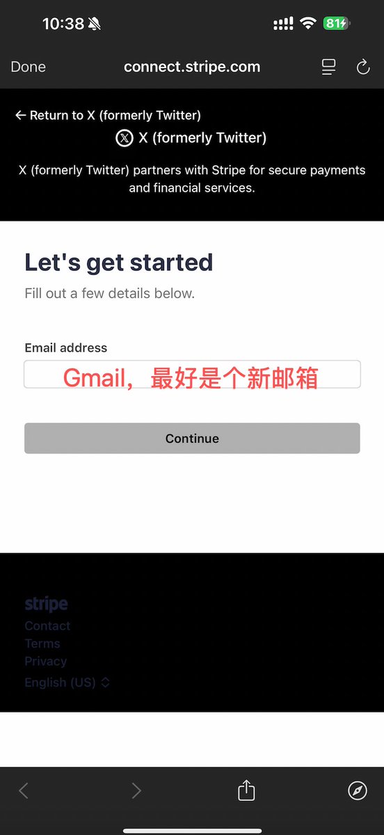 Stripe 是 X 官方指定的收款通道,所有创作者收益都必须通过 Stripe 中转,在创作者中心使用的是 Stripe Express 的服务。