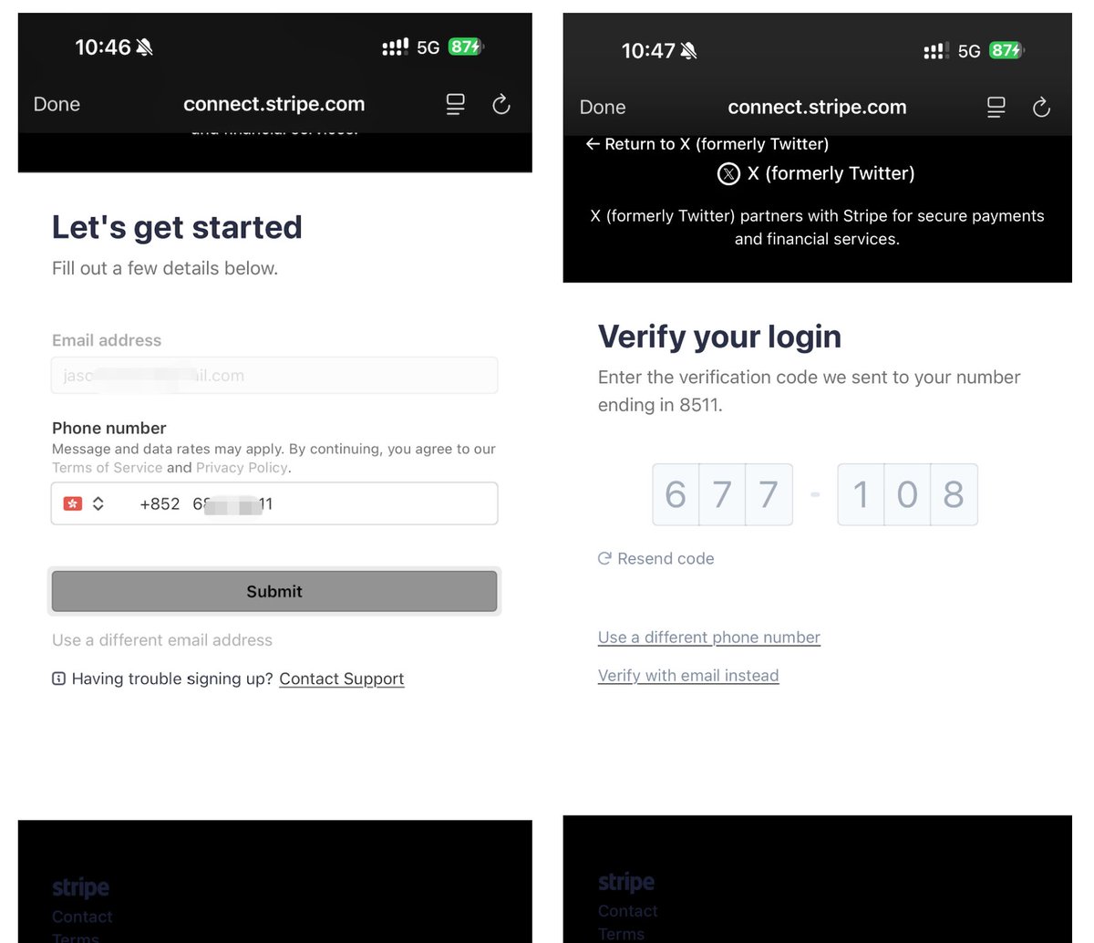 这里认证走 Stripe 通道(而不是 Persona),如果弹出的是 Persona 且一直过不了 → 把手机地区+语言改成美国再试