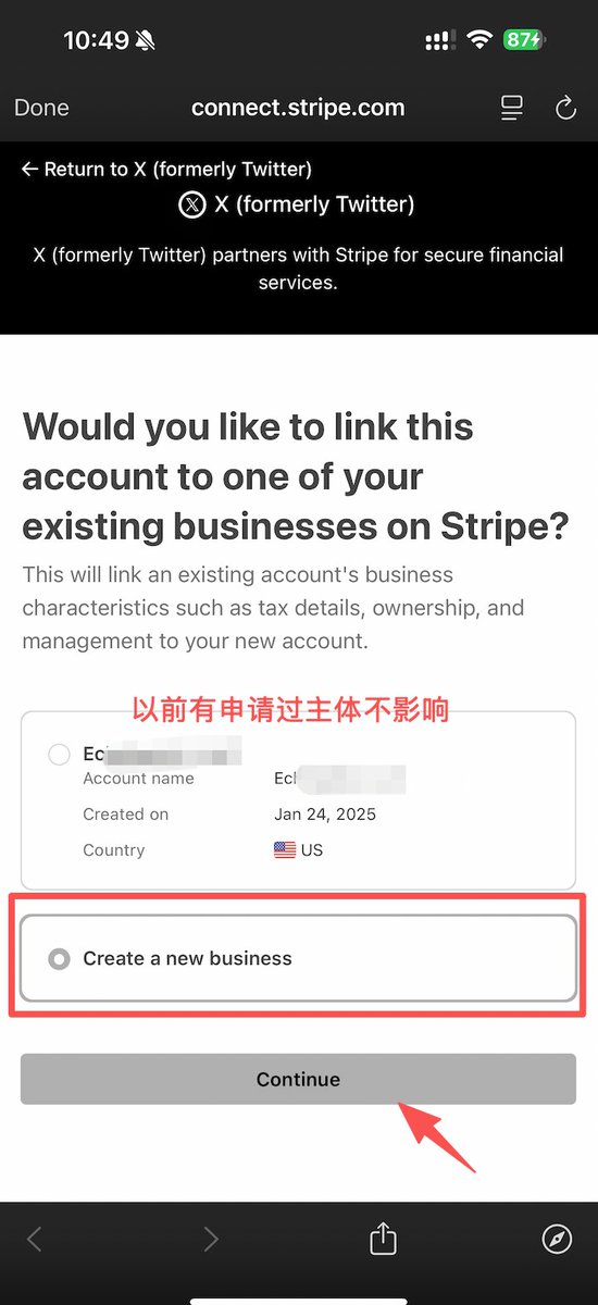 如果你之前用这个卡申请过企业的,也不影响,X 的收益只是经过这个中转到你的卡里面而已。我用的是之前申请美国公司的 Stripe 账户,申请失败之后的一个账号,没影响。