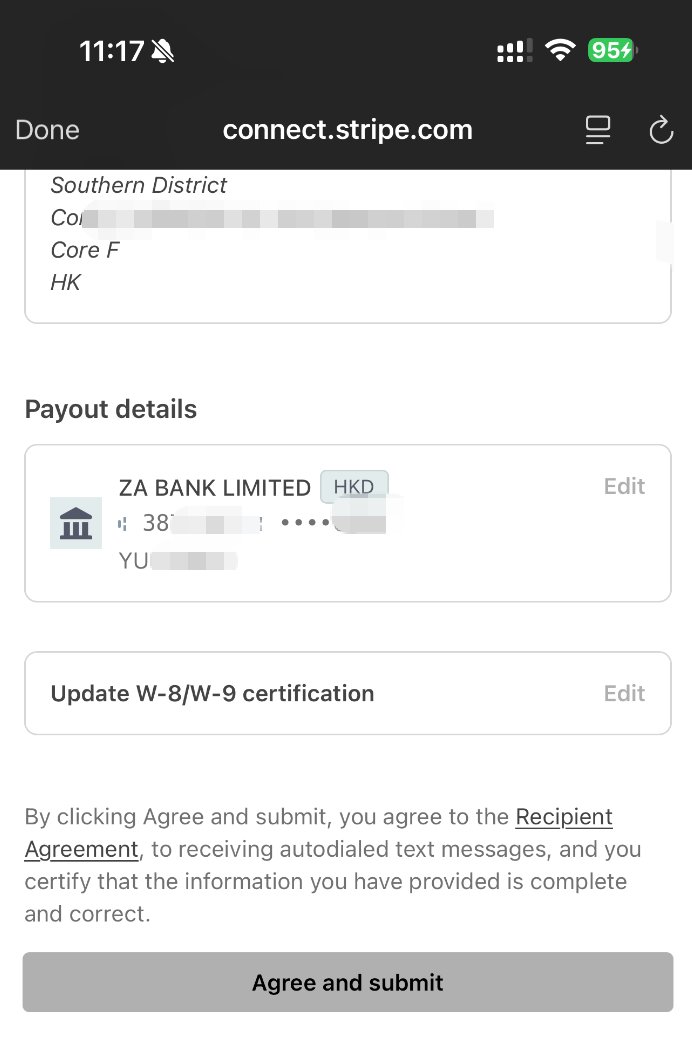 必须完成 Stripe 绑定+身份认证,收益才会进入“待发放”